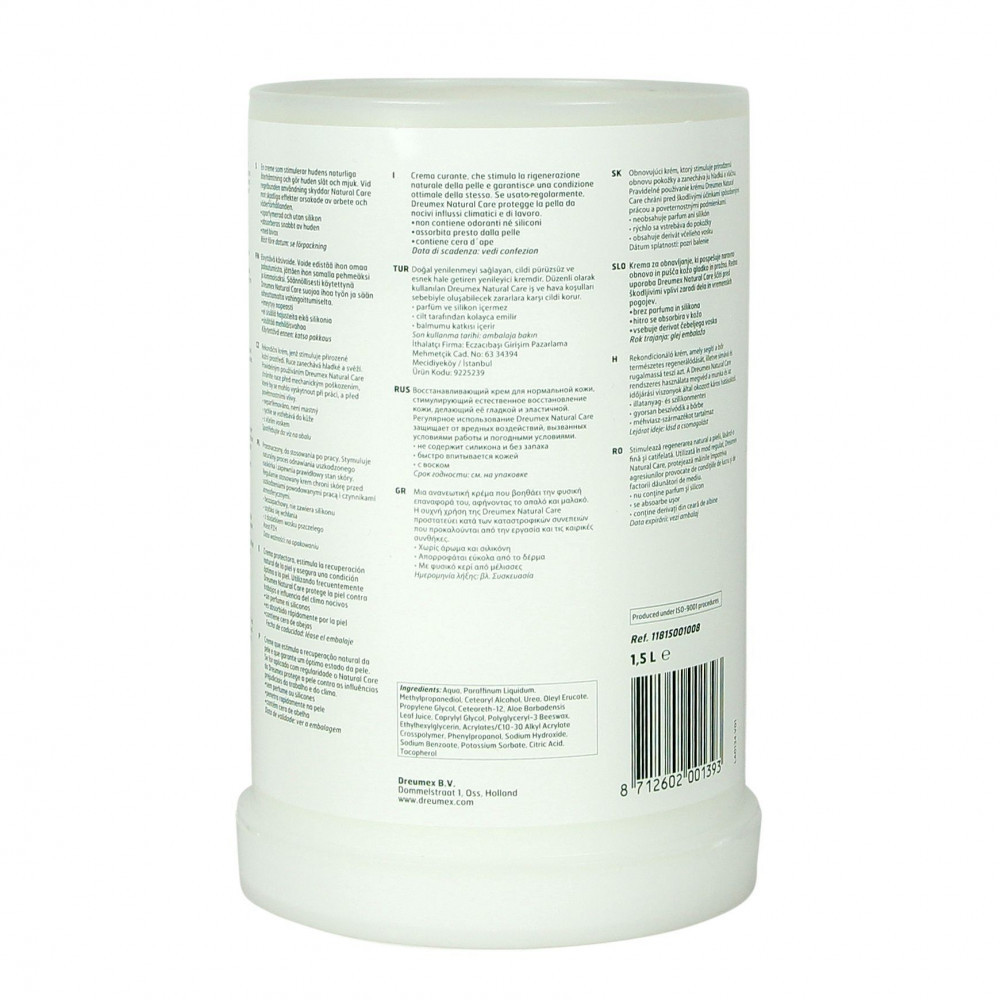 - One2Clean adagolóval használható- munkavégzés utáni kézvédőkrém- véd a munkavégzés és az időjárás okozta káros hatások ellen- serkenti a bőr természetes helyreállítási folyamatát- gyorszan felszívódik- alkalmas minden bőrtípusra- szilikonmentes- színezékmentes- illatmentes- PH 6 - 7,5- 1500 mlEz a kondicionáló krém minden bőrtípusra serkenti a bőr természetes helyreállítási folyamatát, simává és rugalmassá teszi azt. A rendszeres használat mellett a Dreumex Natural Care védelmet nyújt a munka és az időjárás okozta káros hatások ellen.Használat:Munka közben és után vigyen fel egy kis mennyiségű terméket száraz, tiszta kezére, és alaposan dörzsölje be.