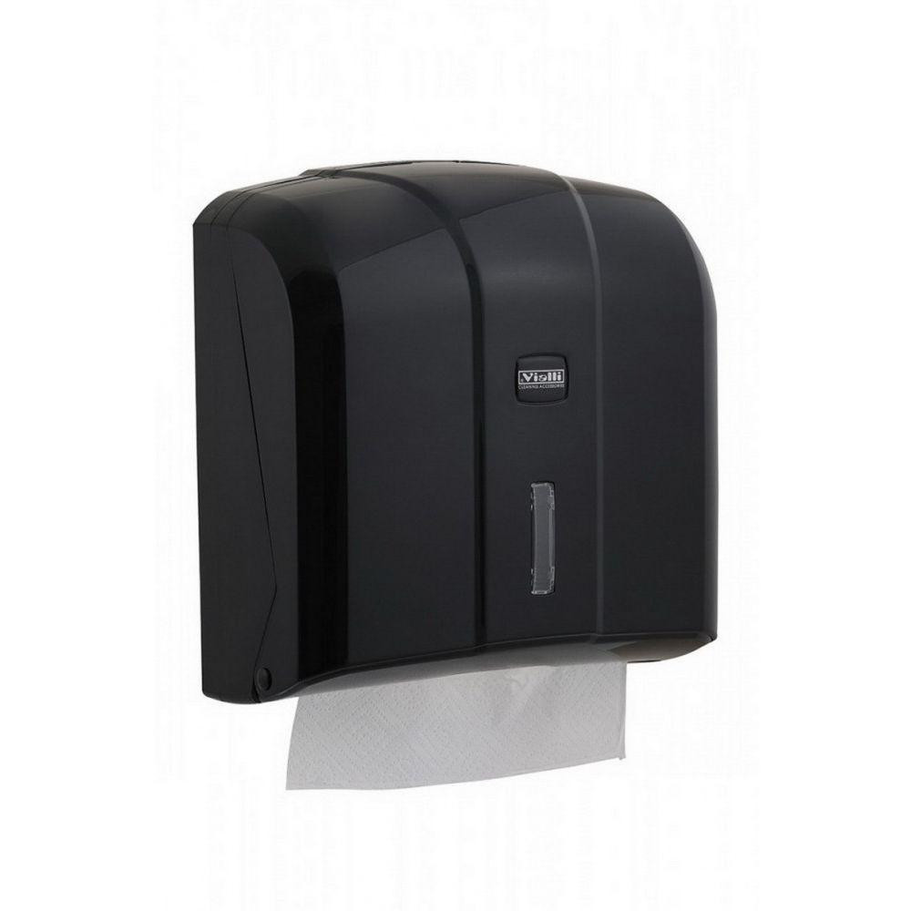- V hajtogatott kéztörlő papír adagoló- ABS műanyag- ablakos- zárható- fekete- 270 (mag) x 270 (szél) x 130 (mély) mm