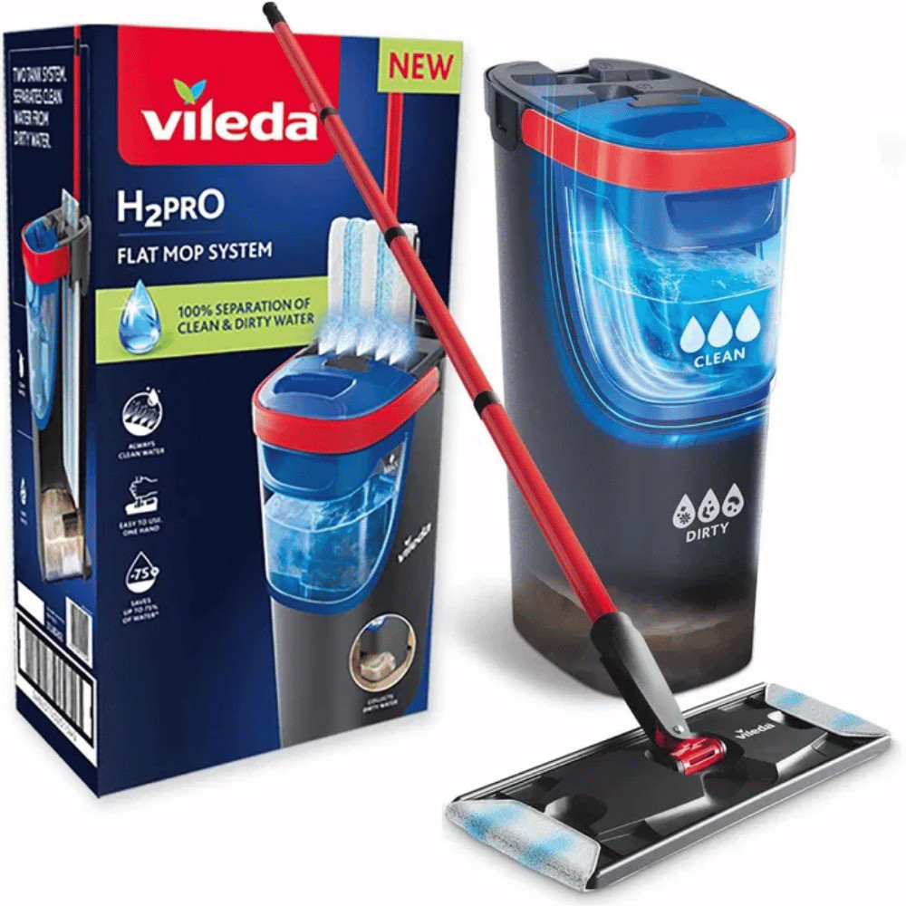 Ismerd meg a Vileda H2Pro lapos felmosó szettet, a takarítás új generációját, amely garantálja a makulátlanul tiszta padlót! Az innovatív, két tartályos rendszerének köszönhetően 100%-ban elkülöníti a tiszta és a szennyezett vizet, így minden egyes mozdulatnál friss vízzel dolgozhatsz. Felejtsd el a kosz szétkenését, és élvezd a valódi higiéniát otthonodban. A kiváló minőségű mikroszálas felmosófej hatékonyan távolítja el a makacs szennyeződéseket is, csíkmentes ragyogást hagyva maga után minden típusú kemény padló felületen.