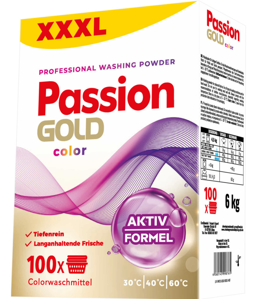 A Passion Gold színes mosópor kimagasló minőségével és hatékonyságával segít abban, hogy ruhái mindig a legjobb formájukat mutassák. A 6kg-os kiszerelésben kapható termék akár 100 mosásra is elegendő, így hosszú időre biztosítja a tiszta, friss ruhákat.