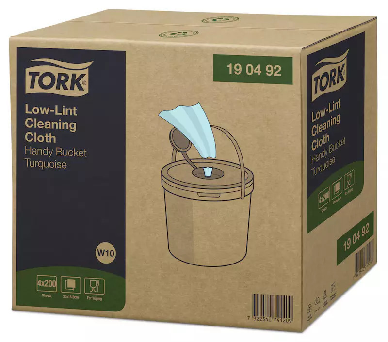 Tork tekercses tisztítókendő W10 szöszszegény Premium, türkiz, 60m/tek, hordozható vödörrel, 4tek/karton
