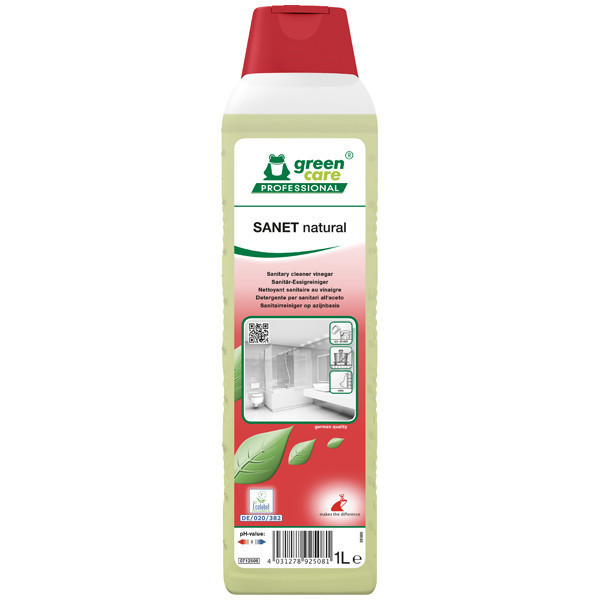 A Tana Sanet Natural ecetes vízkőoldó egy környezetbarát tisztítószer, amely vízkő és szappancsíkok eltávolítására alkalmas minden konyhai és szaniter területen.