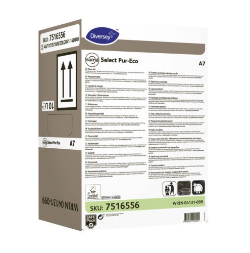 A Suma Select Pur-Eco A7 alkalmas minden típusú automata adagolású kereskedelmi mosogatógéphez. Használja 0.1-0.3 ml/l koncentrációban 70-80 ºC-on, lágy/közepesen kemény vízkeménység mellett. A terméket fecskendezze közvetlenül a végső