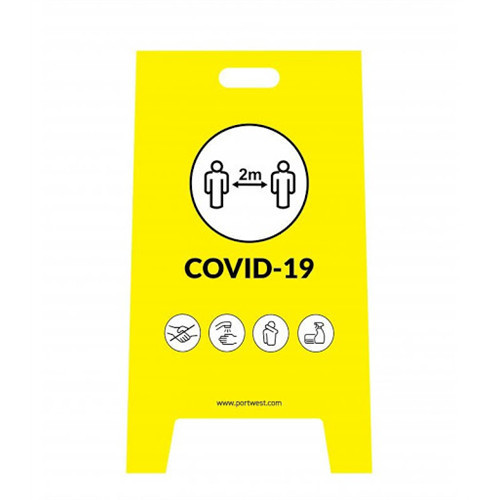 A COVID-19 biztonsági előírásokra figyelmeztető tábla fontos eszköz a járványügyi intézkedések betartásának elősegítésére.