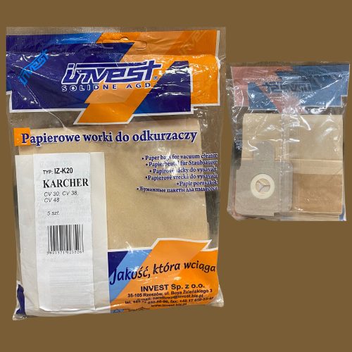 Az alábbi termék a Porzsák Karcher IZ-KU 20 CV30, CV38, CV48 amely egy csomagban 5 darabot tartalmaz.