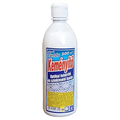 Blank Tartós Keményítő 500 ml (12db/karton): Tartsd ruháidat hosszú ideig frissen és formában a Blank Tartós Keményítő segítségével! Tökéletes megoldás a textíliák, különösen az ingek, blúzok, terítők és egyéb ruhaneműk formájának és tartásának megőrzésére.