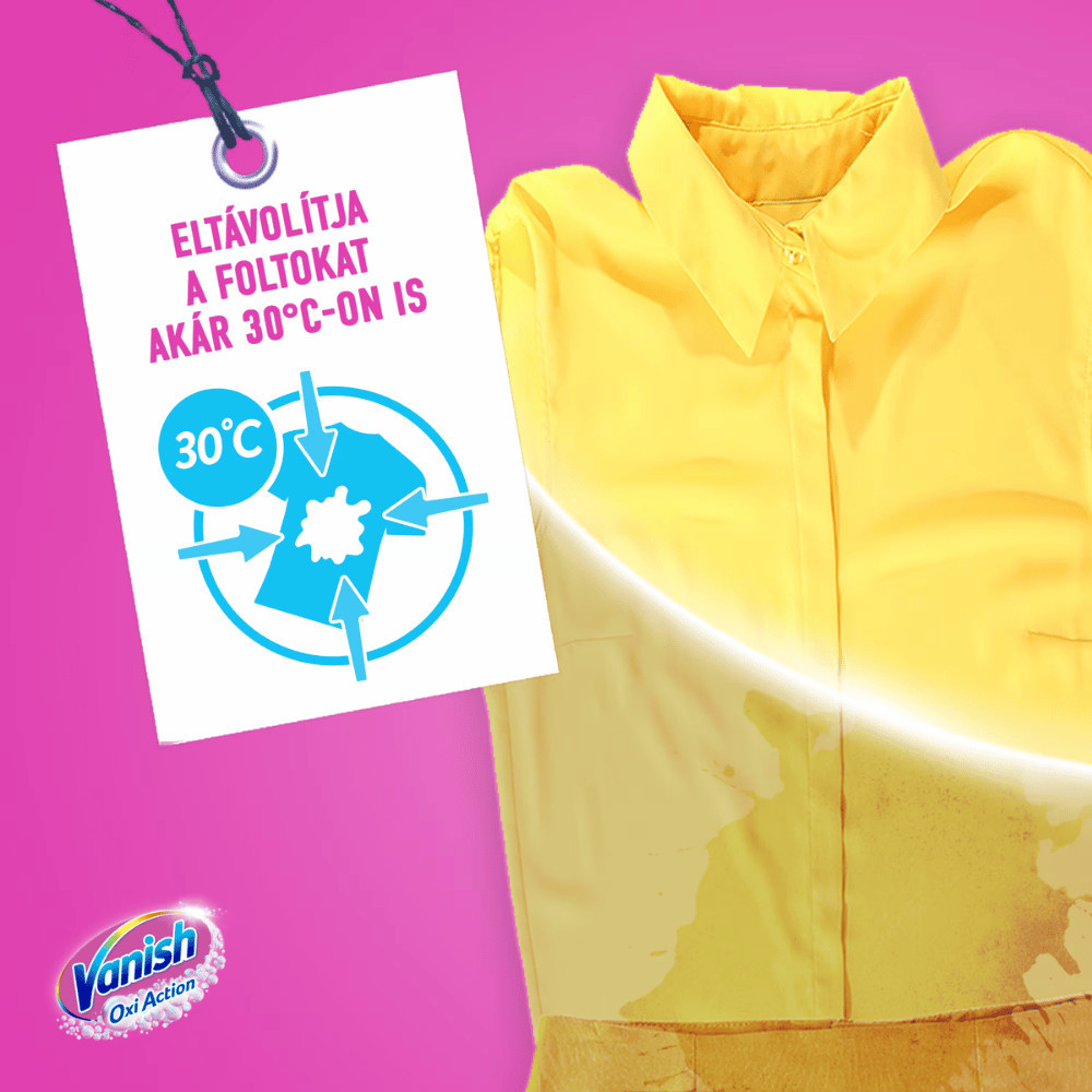 Add vissza a színes ruhák eredeti élénkségét – a Vanish Oxi Action Color géllel a foltoknak nincs esélyük!