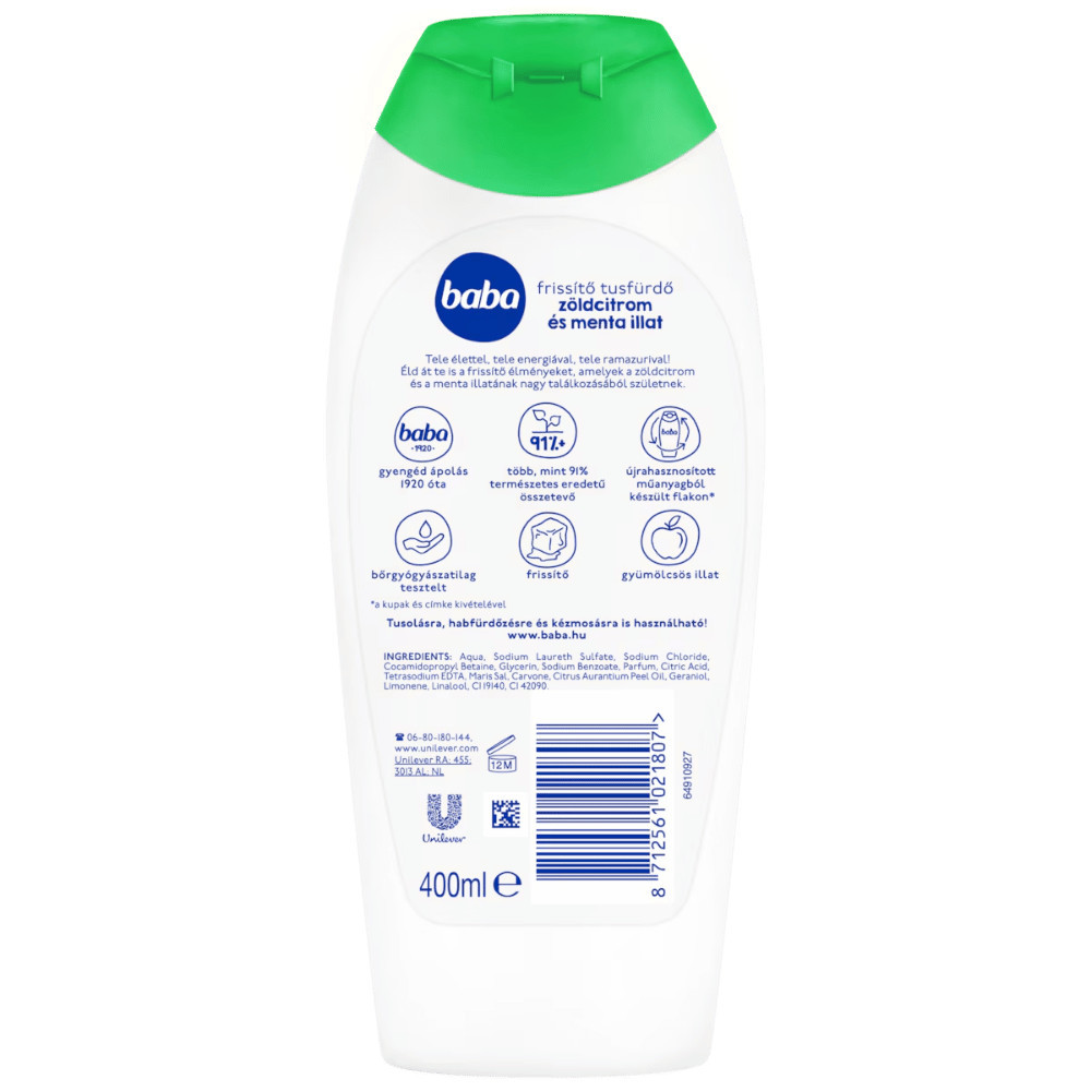 Jellemzői:• több, mint 91% természetes eredetű összetevő• a kupak és címke kivételével újrahasznosított műanyagból készült flakon• bőrgyógyászatilag tesztelt• frissítő, gyümölcsös illat