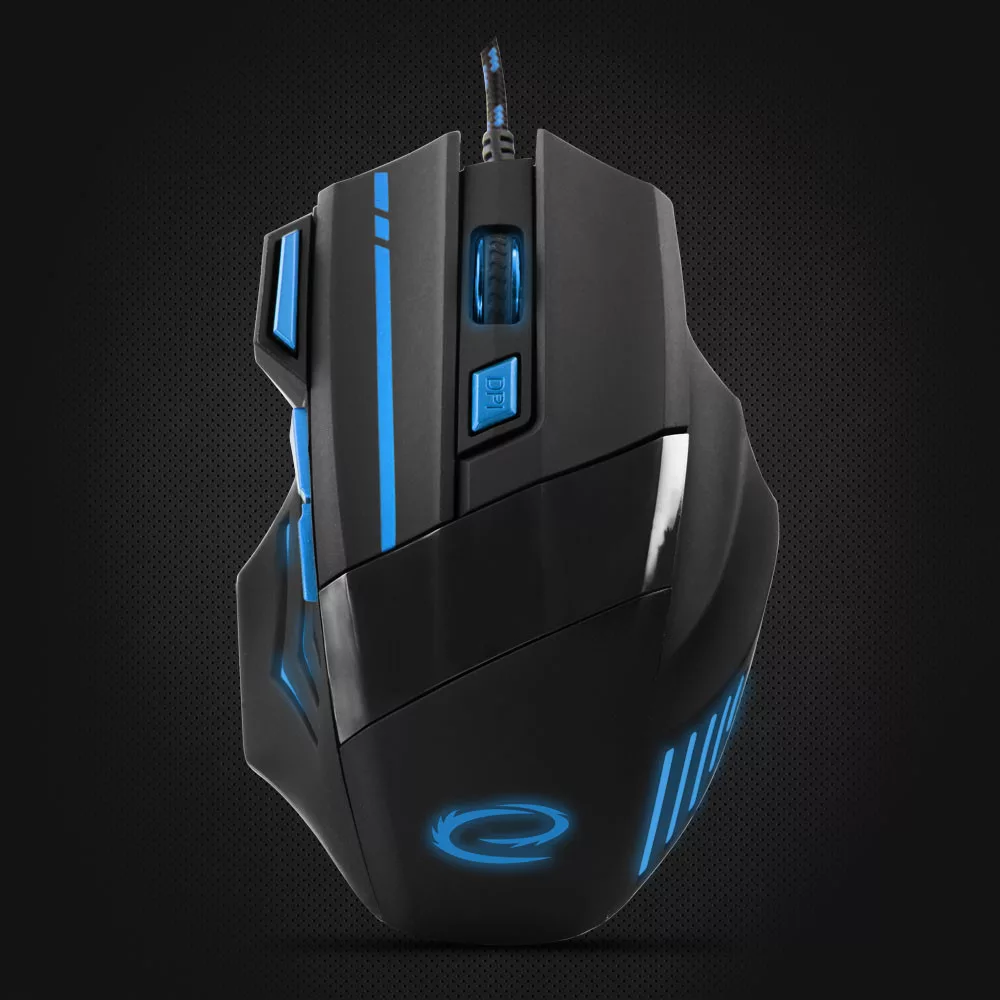 Professional and functional Esperanza MX201 WOLF mouse designed specifically for gamers. The built-in precise optical sensor with adjustable resolution of 800 / 1200 / 1600 / 2400 allows for accurate cursor positioning in games. The mouse also features a handy additional "Double Click" button. The ergonomic shape, thoughtful profiling of the product, and materials used in its finish ensure the mouse fits well in the hand while preventing fatigue during gameplay. The sides of the casing are equipped with "Next" and "Previous" buttons, offering enhanced gaming possibilities and faster navigation in internet browsers. The MX201 WOLF includes a robust textile-covered cable with a reinforced USB connector. It's an excellent tool for gamers demanding uncompromised functionality from their gear.
