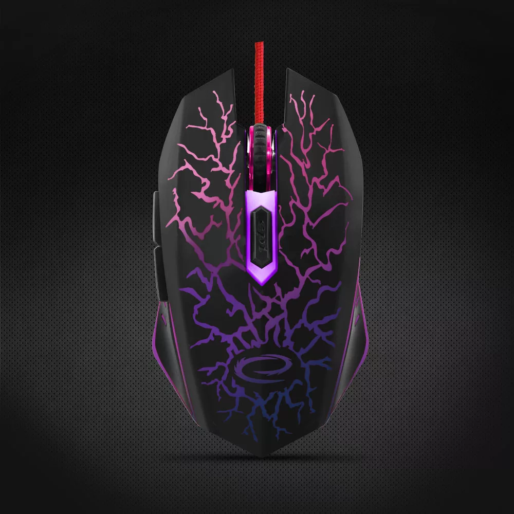 The Esperanza MX211 LIGHTNING is a professional and functional mouse designed specifically for gamers. The built-in precise optical sensor with adjustable resolution of 800 / 1200 / 1600 / 2400 DPI allows for accurate cursor positioning in games. Its ergonomic shape, well-contoured design, and high-quality materials ensure a comfortable grip while preventing hand fatigue during extended gaming sessions. The side of the housing features "Next" and "Previous" buttons, offering greater functionality in games and speeding up navigation in web browsers. The MX211 LIGHTNING comes with a durable, textile-braided cable reinforced with a sturdy USB connector. This is an excellent tool for gamers who expect uncompromising functionality from their equipment.