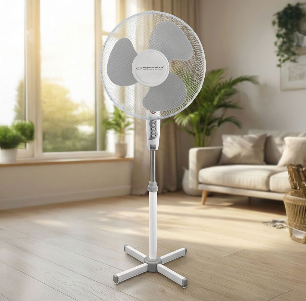 Choose the Esperanza HURRICANE 16'' when you want powerful cooling that feels natural, quiet and reliable throughout the day. Its white–grey finish blends seamlessly with modern interiors, making it a practical and attractive addition to your home or workspace.