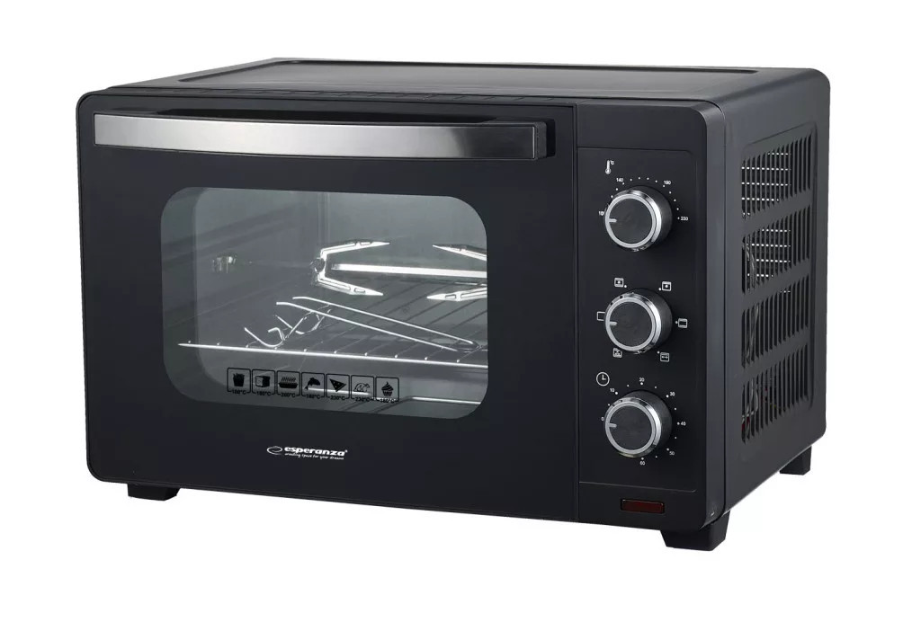 LeírásAz Esperanza NAPOLI mini sütő a funkcionalitást kompakt mérettel ötvözi, 5 sütési móddal, légkeveréses funkcióval és beépített forgónyárssal rendelkezik. 25 literes űrtartalmával és 1600 W teljesítményével tökéletes a mindennapi főzéshez, valamint pizza sütéséhez, húsok pirításához vagy zöldségek grillezéséhez. A precíz szabályozógomboknak köszönhetően a hőmérséklet akár 230 C-ig, a sütési idő pedig akár 60 percig is beállítható. A készlet tartalmaz egy pizzasütő tálcát, grillrácsot, edényfogót és egy teljes forgónyárs készletet mindent, amire szüksége van a kényelmes otthoni főzéshez.Kompakt méret, maximális teljesítményKONVEKCIÓS FUNKCIÓ MELEG LEVEGŐ KERINGETÉSEBEÉPÍTETT FORGÓGRILL5 SÜTÉSI MÓDŰrtartalom: 25 literTeljesítmény: 1600 WHőmérséklet: 100 230 CIdőzítő: 0 60 perc5 sütési módKonvekciós funkció az egyenletes hőeloszlásértForgónyárs tökéletes húsok sütéséhezMorzsatálcaKábelhossz: 0,9 mKülső méretek: 486 376 316 [mm]Belső kamra mérete: 334 281 260,2 [mm]Tápellátás: 220 240 V, 50/60 HzMellékelt tartozékok: pizzalap, grillrács, edénytartó, forgónyárs készletGyártó: Esperanza