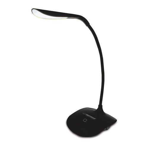 Modern LED desk lamp model Esperanza ACRUX. This LED desk lamp emits bright white light, close to natural daylight, reducing eye strain. Its movable arm allows for easy rotation and positioning at any angle. A special softening filter provides eye protection and minimizes fatigue. The lamp does not emit harmful UV radiation, making it safe for skin and eyes. Highly energy-efficient, it can be powered by AAA batteries or an external USB adapter.