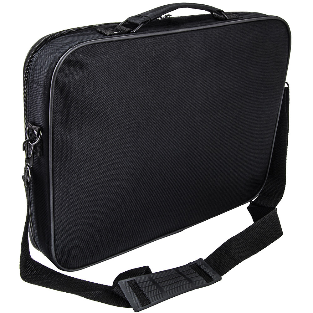 Elegant notebook bag designed for laptops with a maximum screen size of 15.6". The internal compartment size can be adjusted using a sliding panel with Velcro fasteners, allowing the compartment to fit various notebook dimensions perfectly. The bag is crafted from high-quality materials, with side walls reinforced by a metal frame and lined internally with a soft foam layer to effectively protect the notebook from impacts and scratches. The notebook compartment is cushioned on all sides with soft materials for added safety. Externally, the front of the bag features a practical pocket suitable for documents or other items. Inside, there is an additional pocket and a strap to securely hold the notebook. The metal hinges for the handle and shoulder strap ensure durability and reliability. The adjustable shoulder strap is attached with practical metal carabiners and features a rubber pad in its middle section for added carrying comfort.