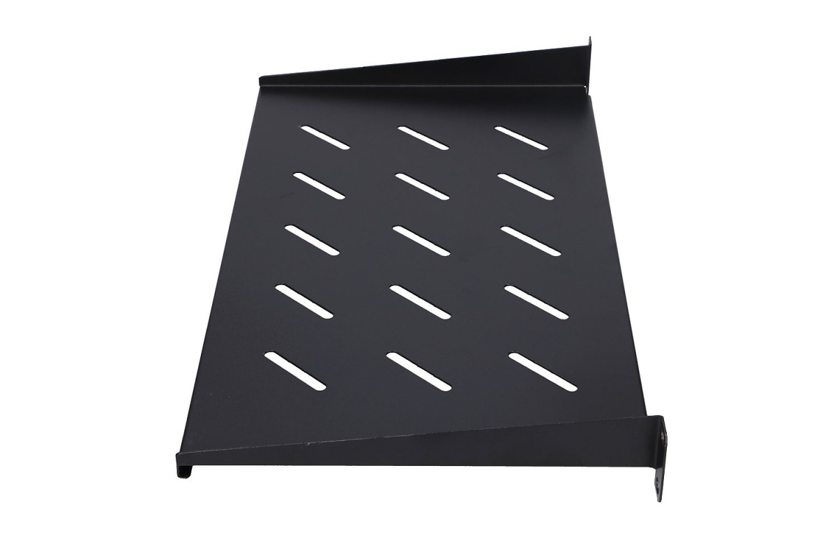Fixed shelf dedicated to 19'' RACK hanging cabinets. With its help, it is possible to mount devices in the cabinet that do not have RACK 19'' enclosures. Made of steel sheet in black color. The shelf is fixed in 4 points, which guarantees its stability. RACK standard cabinets are widely used in server rooms, recording studios, industrial premises, teletechnology and power engineering.