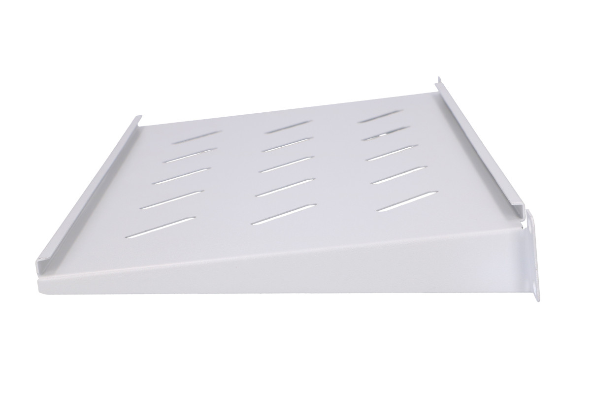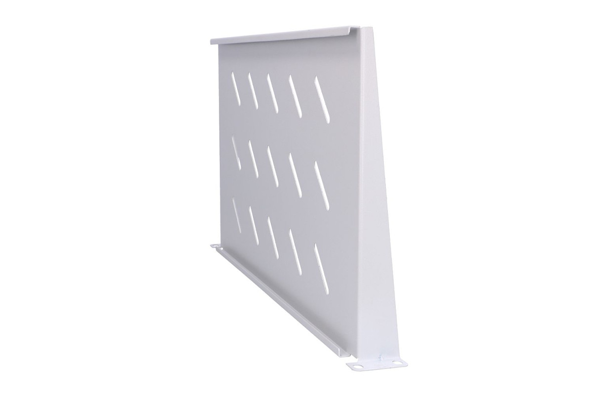 Fixed shelf dedicated to 19'' RACK hanging cabinets. With its help, it is possible to mount devices in the cabinet that do not have RACK 19'' enclosures. Made of steel sheet in gray color. The shelf is fixed in 4 points, which guarantees its stability. RACK standard cabinets are widely used in server rooms, recording studios, industrial premises, teletechnology and power engineering.