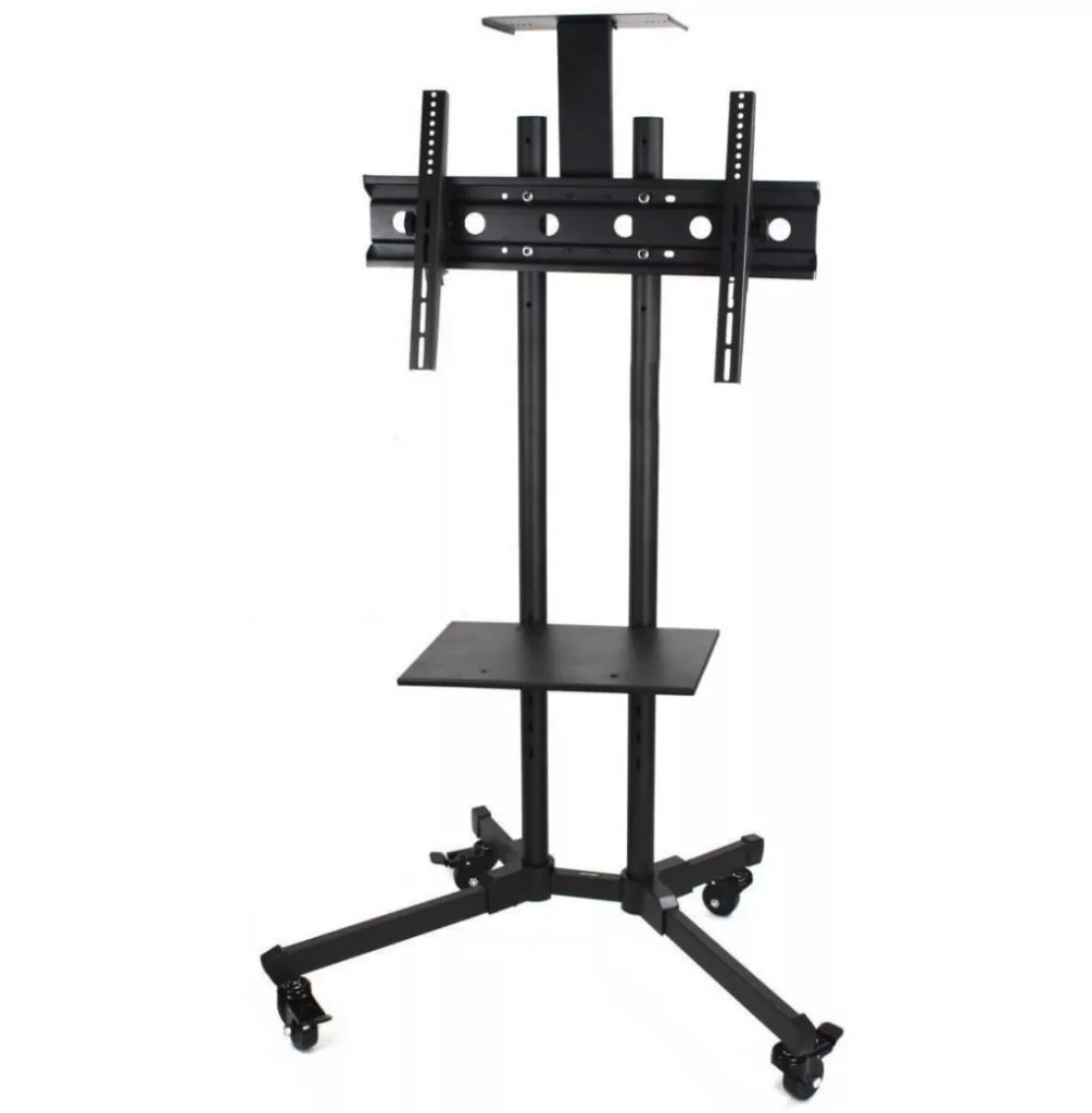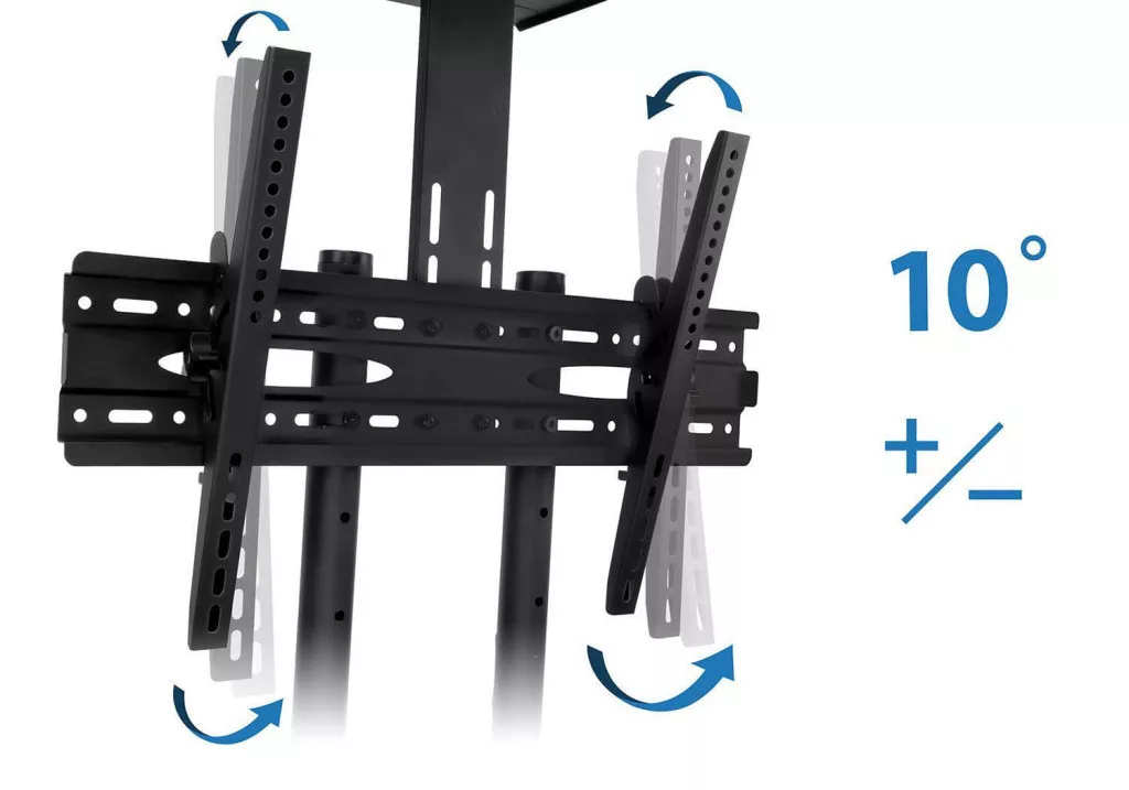 Az állvány egy TV tartó konzollal, egy laptop tartó tálcával, valamint egy projektor vagy kamera tartó tálcával rendelkezik, így minden szükséges eszköz egy helyen elfér. A projektor- vagy kameraállvány lehetőséget biztosít konferenciahívásokhoz vagy online előadásokhoz, míg a laptop- és monitorrögzítés tökéletes támogatást nyújt a munkavégzés során.