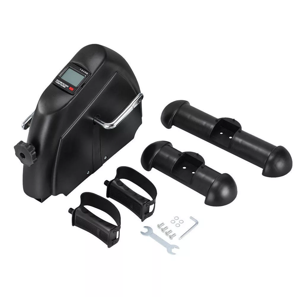 Használható a lábak és karok erősítésére is, így komplex mozgásformát biztosít. A pedálokat két irányban is tekerheted, miközben a kijelző minden adatot rögzít: idő, távolság, tekerések száma, kalóriaégetés.