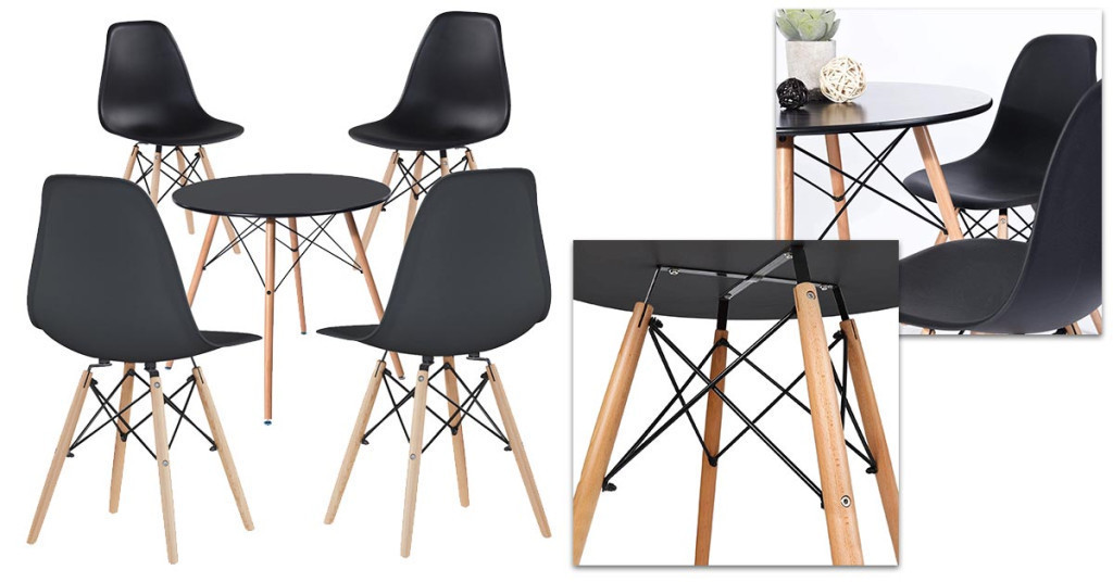 A szett anyaghasználata – műanyag ülőfelület, fa lábak és fém merevítések – biztosítja a hosszú élettartamot és a megbízhatóságot. A székek 100 kg teherbírással rendelkeznek, így stabil és masszív megoldást kínálnak. Könnyen tisztítható felületük pedig gondtalan használatot garantál.