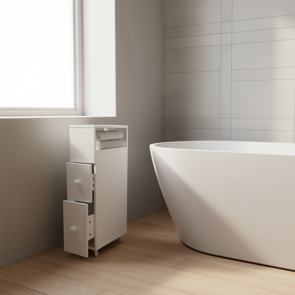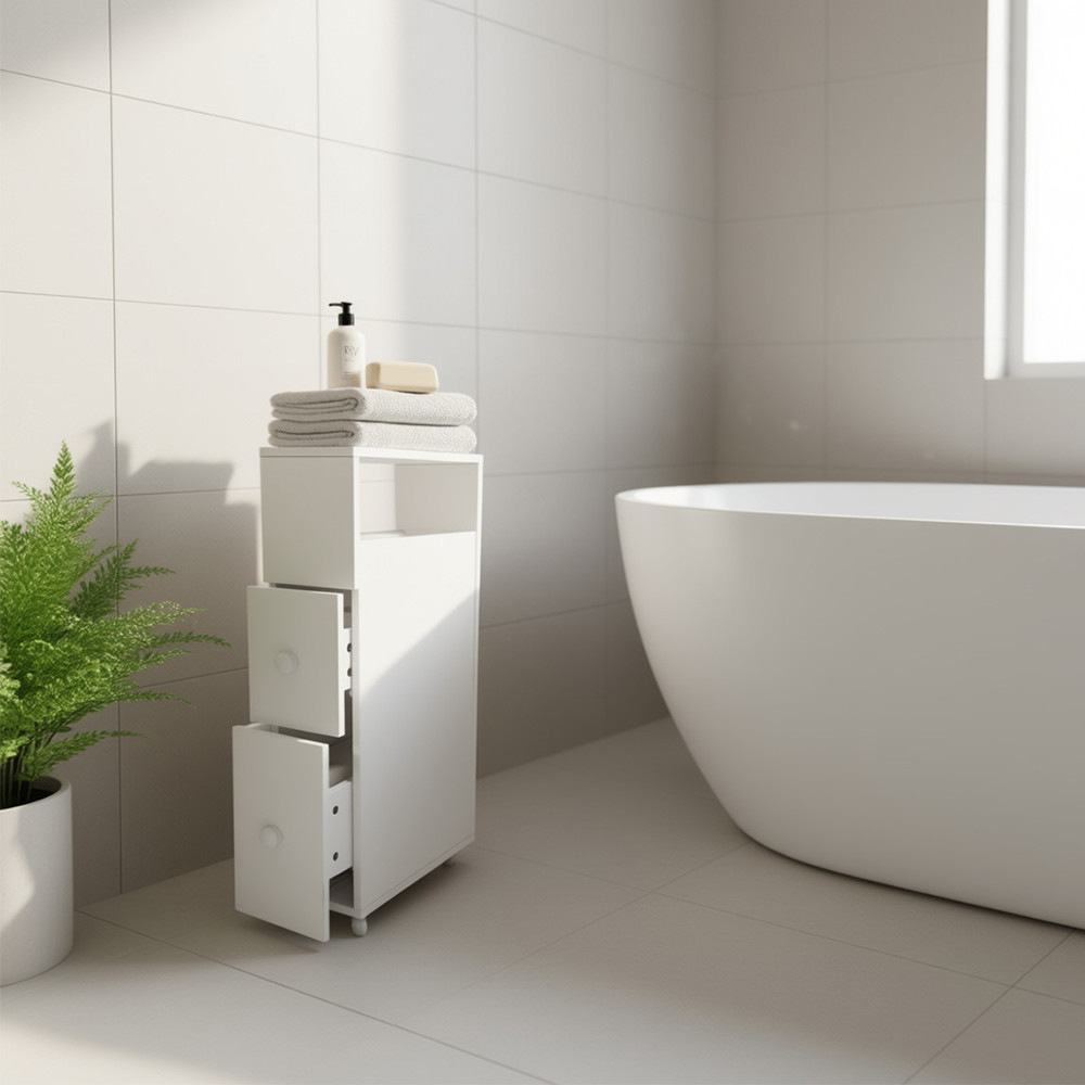A kihúzható szekrény tökéletes megoldás a kisebb lakások praktikus berendezéséhez. Helytakarékos kialakításának köszönhetően szűk helyekre is könnyedén beilleszthető, miközben tágas tárolókapacitást kínál. A 2 fiókos, gurulós szekrény bármely helyiségben remekül használható, legyen szó fürdőszobáról, konyháról vagy akár az előszobáról. MDF anyagból készült, modern és stílusos kivitelben, amely praktikumot és esztétikát egyaránt kínál.