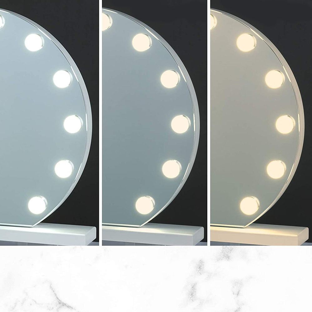 A tükör 12 LED égője biztosítja az egyenletes megvilágítást, három különböző színtónussal: nappali fény, hideg fehér és meleg sárga. Az érintőképernyős kezelőfelületen könnyedén állíthatod a fényerőt is, így mindig az adott környezethez és igényeidhez igazíthatod a megvilágítást.