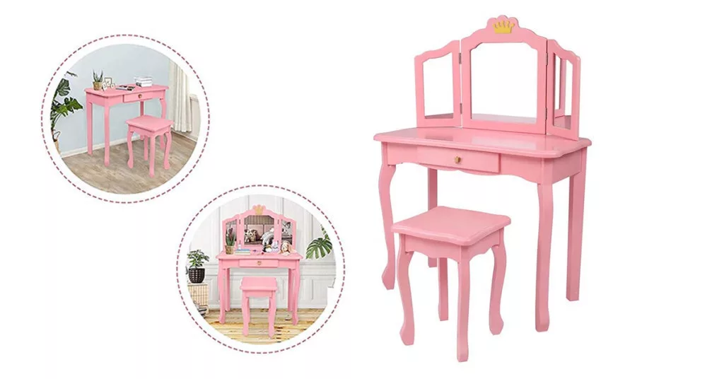 A rózsaszín gyermek fésülködő asztal tökéletes választás, ha szeretnél egy varázslatos bútordarabot kislányod szobájába. A behajtható tükrök és az aranyszínű korona igazi mesevilágot idéznek, és inspirálják a szerepjátékokat, amelyek fejlesztik a képzelőerőt.