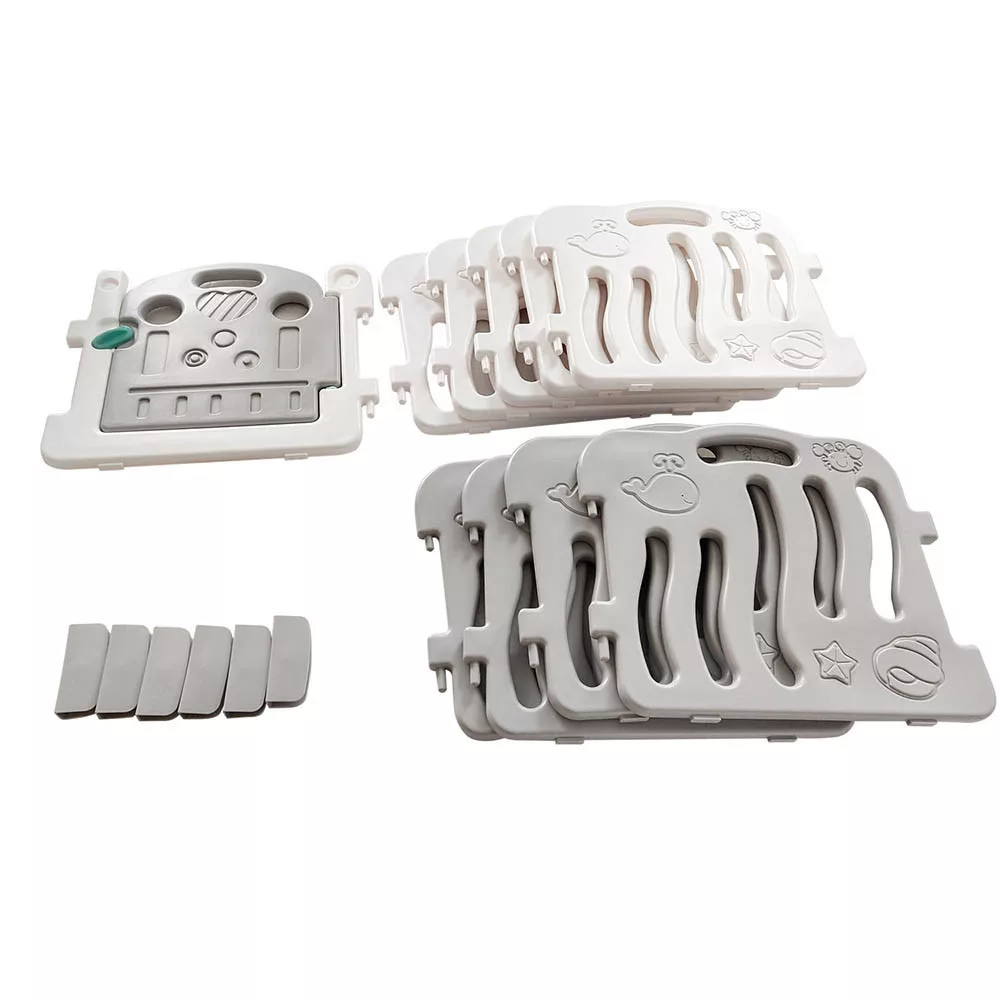 A csúszásgátlós talpaknak és rögzítő elemeknek köszönhetően a babakarám nem mozdul el, így maximális stabilitást nyújt. Az elemek közötti rések 4,5 cm szélesek, így a kicsik biztonságban játszhatnak, miközben a szülők is nyugodtak lehetnek.