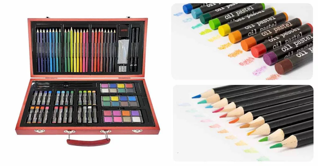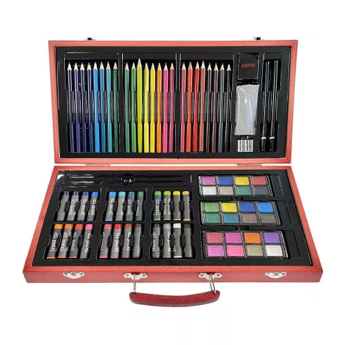 A 84 db-os rajzkészlet egy kompakt, hordozható művészkészlet, amely minden korosztály számára ideális a kreativitás kibontakoztatásához. A masszív fa tárolódobozban található színesceruzák, olajpasztell kréták, vízfestékek és további kiegészítők bőséges teret adnak az alkotásnak, otthon és útközben egyaránt.
