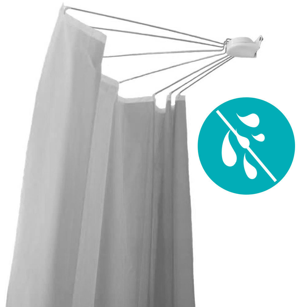 Az ernyő alakú zuhanyfüggönytartó helytakarékos és elegáns megoldás kis fürdőszobákhoz. Oldalra fordítható kialakítása megkönnyíti a használatot, miközben a mellékelt ajándék nagy méretű zuhanyfüggöny megóvja a fürdőszobát a kifröccsenő víztől. A zuhanyfüggöny színe nem választható, véletlenszerűen kerül kiszállításra.