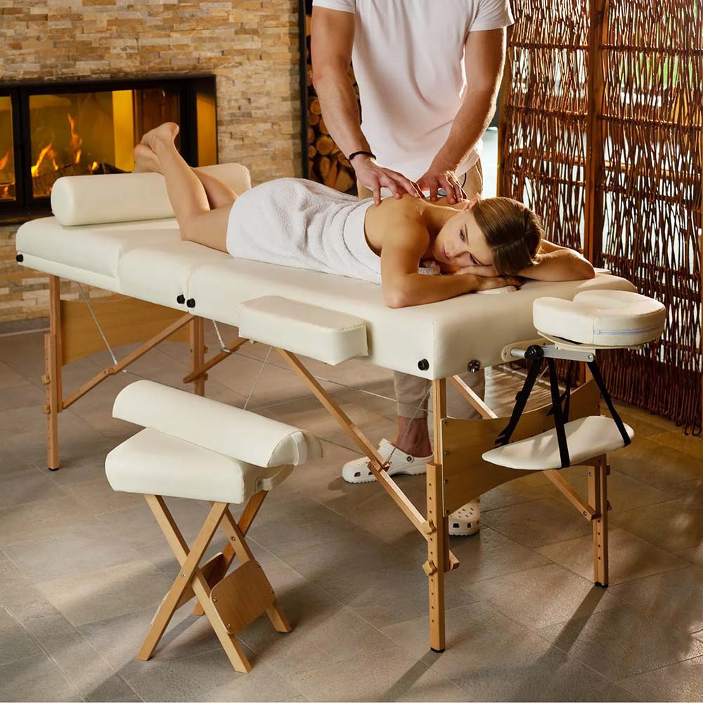 Könnyen hordozható és praktikus, ez az összecsukható masszázsszék két masszázshengerrel érkezik, hogy maximális kényelmet nyújtson. A stabil, fából készült váz akár 150 kg-ot is elbír, míg a kompakt kialakítás megkönnyíti a szállítást és tárolást. A könnyen tisztítható műbőr bevonat hosszú távon is esztétikus marad, így ideális választás otthoni vagy professzionális használatra. Szerezd be most, és tedd még pihentetőbbé a masszázsélményt!