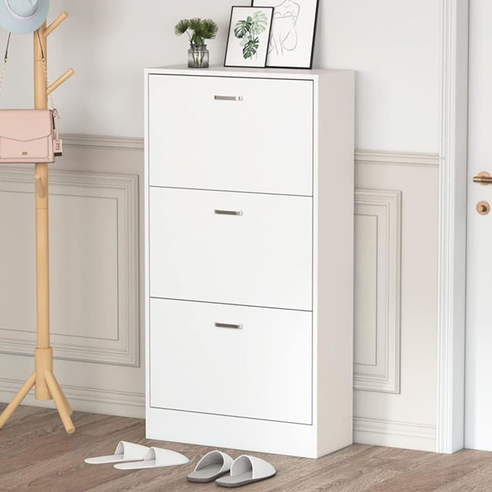 Rendezd cipőidet elegáns stílusban ezzel a modern, 3 részes cipősszekrénnyel! Letisztult fehér dizájnja bármilyen térbe illik, míg keskeny és helytakarékos kialakítása garantálja, hogy kis helyen is elférjen. Praktikus, családbarát megoldás az előszobába, irodába vagy közlekedőbe, miközben tetején dekorációkat is elhelyezhetsz.