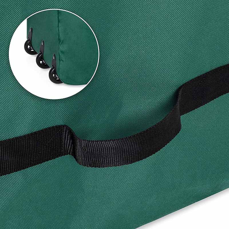 A táska erős, kopásálló anyagból készült, amely hatékonyan óvja a benne tárolt tárgyakat a portól, nedvességtől és egyéb külső behatásoktól. Így biztos lehetsz benne, hogy műfenyőd és egyéb holmijaid sértetlenül átvészelik a tárolási időszakot.