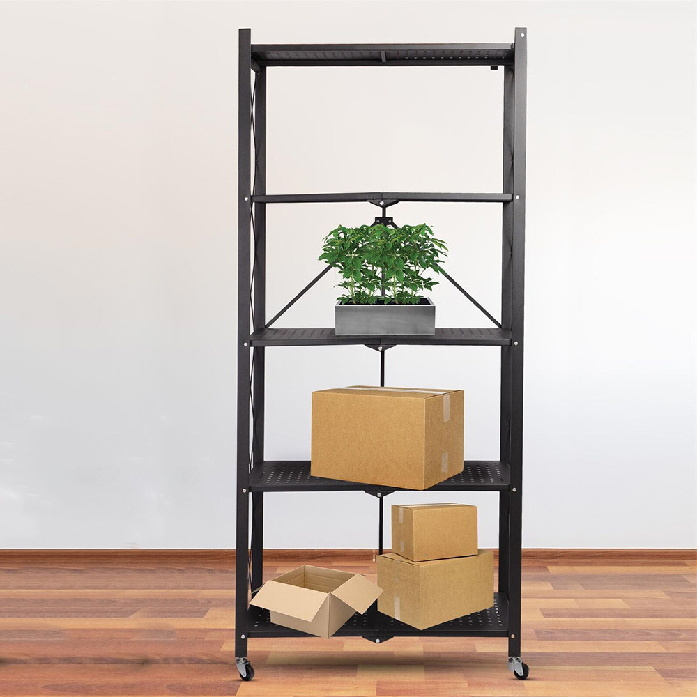 A 4 cm átmérőjű kerekek könnyű mozgatást, az 5 darab, 33,5 cm távolságra lévő polc pedig hatékony helykihasználást kínál, akár 100 kg összesített teherbírással.