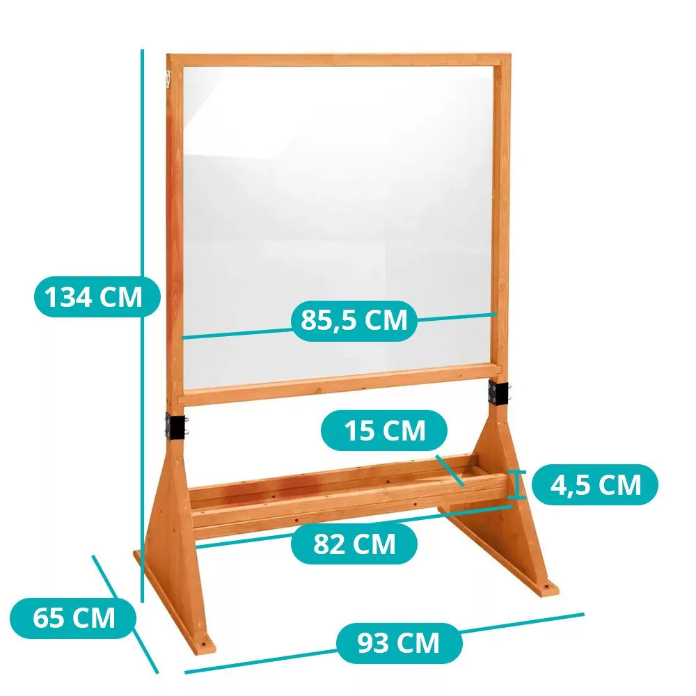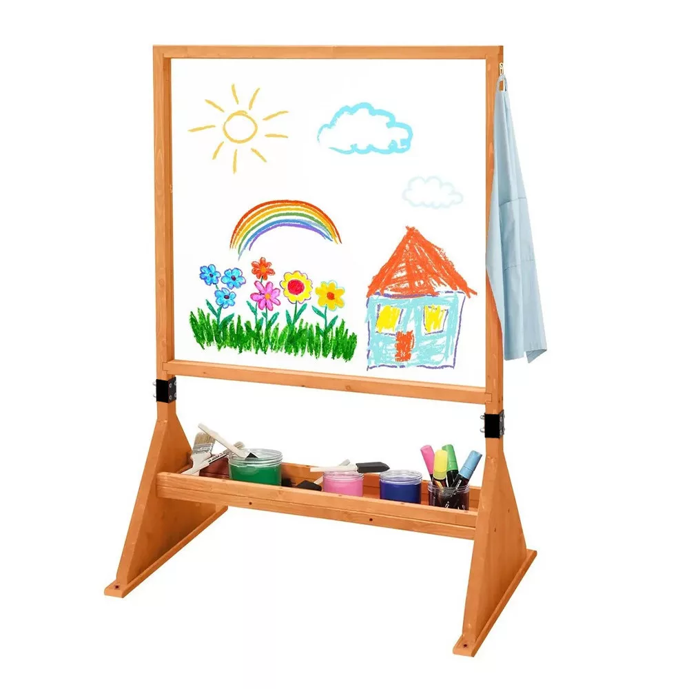 Fedezd fel a művészet örömét ezzel a kétoldalas plexi rajztáblával, amely tökéletes eszköz a gyerekek számára akár otthon, akár a szabadban. Stabil fa állványa biztosítja a kényelmes használatot, a tartozék színes festékek pedig lehetővé teszik a kreativitás szabad szárnyalását. Könnyen tisztítható felülete újra és újra helyet adhat az új alkotásoknak.