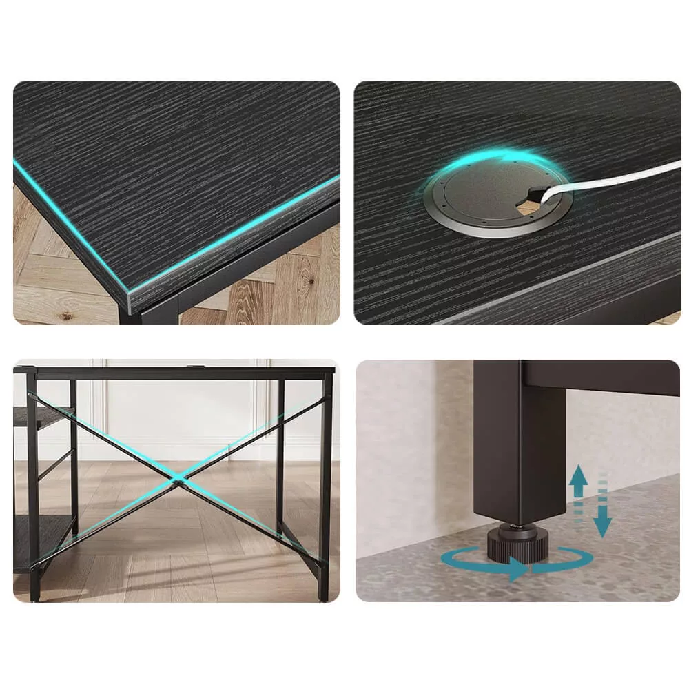 Az asztal polcain kényelmesen tárolhatod a napi munkához vagy tanuláshoz szükséges eszközöket, legyen szó iratokról, füzetekről, könyvekről vagy dekorációkról. A polcok elrendezése igény szerint variálható, így teljes mértékben a saját igényeidhez igazíthatod a munkaállomásodat.