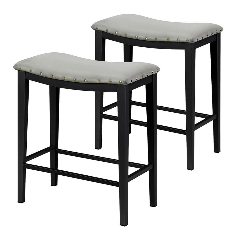 Tedd elegánsabbá és kényelmesebbé otthonod ezzel a 2 db-os kárpitozott bárszék szettel! A modern szürke kárpitozás, a puha párnázott ülőfelület és a masszív, 100 kg teherbírású fém váz stabilitást és hosszú távú tartósságot biztosít. Könnyen tisztítható és egyszerűen összeszerelhető, így tökéletes választás konyhapulthoz, reggeliző szigetekhez vagy bárpultokhoz.