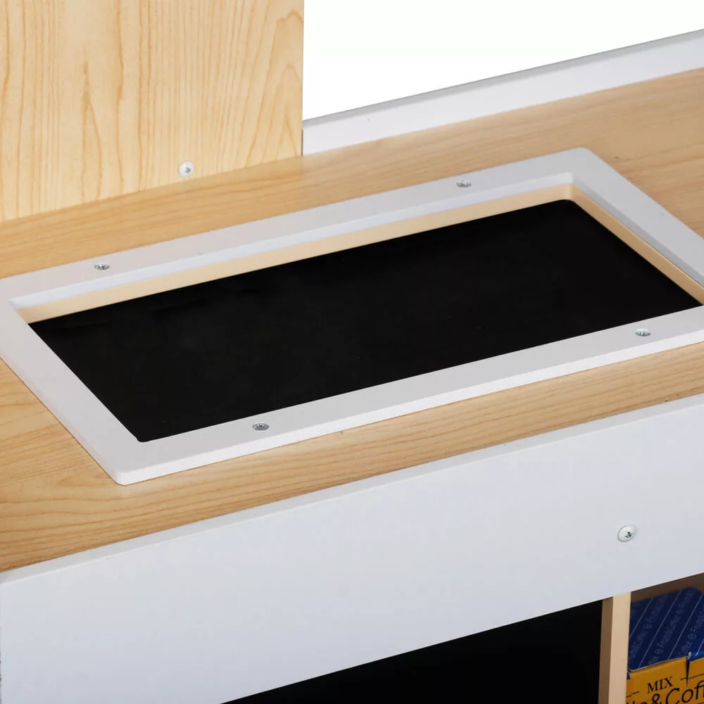 Ebben a részletesen kidolgozott fa játék szupermarketben a gyerekek valódi boltost játszhatnak: rendezhetik a polcokat, lemérhetik az árut, kezelhetik a pénztárgépet, vagy kiszolgálhatják a vevőket. A hétköznapi helyzetek eljátszása örömteli élménnyé válik a natúr fa elemekkel.