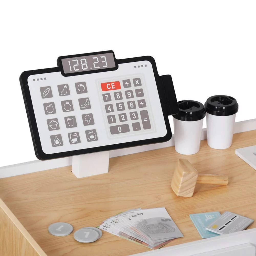 A boltos játék során a gyerekek kommunikációs és együttműködési képességeik mellett a számolási és pénzkezelési ismereteiket is fejlesztik. A kiegészítők – játékpénz, mérleg, bankkártya – még életszerűbbé teszik a játékot.