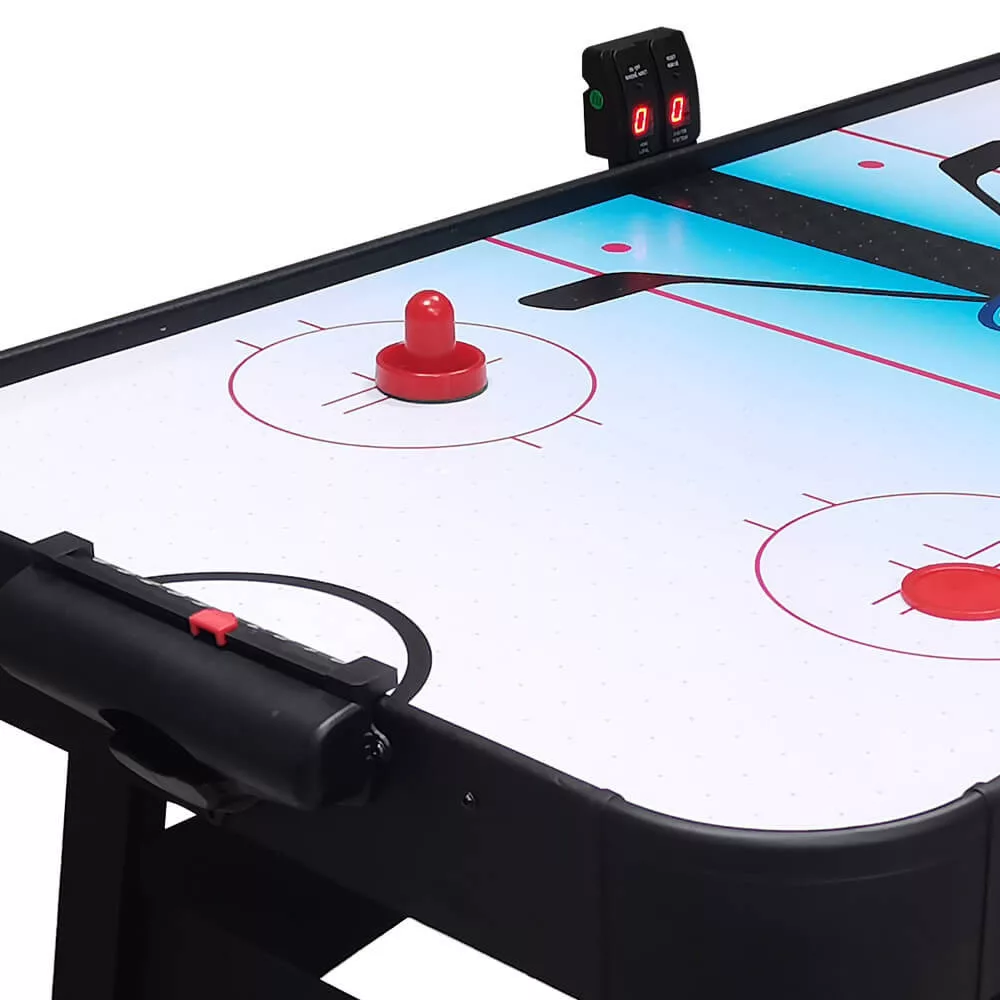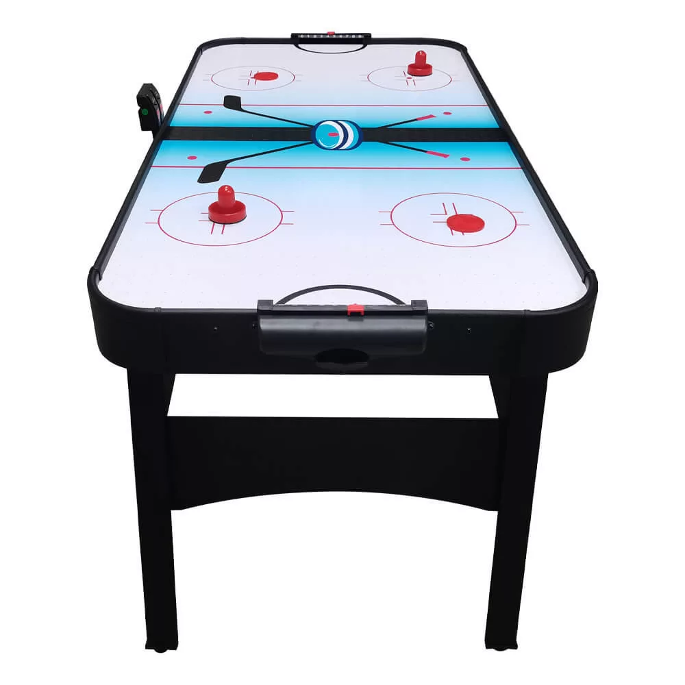 Szeretnéd feldobni a családi összejöveteleket vagy baráti esteket? A léghoki asztal garantáltan izgalmas és pörgős szórakozást nyújt minden korosztálynak! Modern és letisztult dizájnjának köszönhetően bármilyen helyiségben jól mutat, kompakt mérete révén pedig könnyedén elfér akár a nappalidban, akár a garázsban. A beépített digitális pontszámlálóval mindig nyomon követheted a játék állását, így csak a győzelemre kell koncentrálnod!