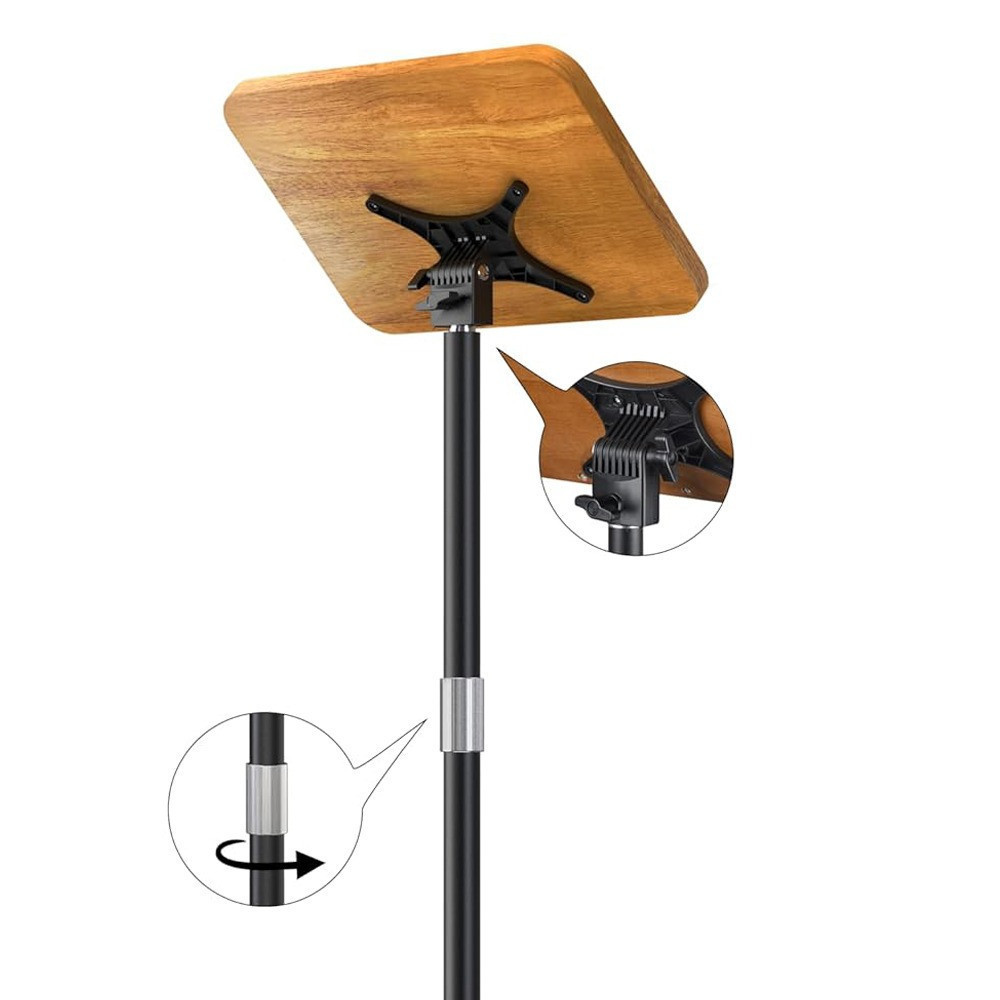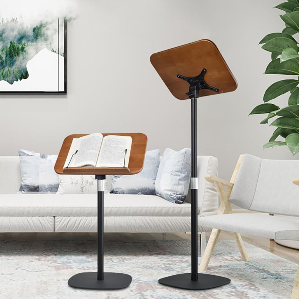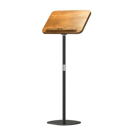 Az állítható magasságú könyvtartó állvány elegáns és praktikus megoldást kínál könyvek, kották vagy dokumentumok stabil tartására, miközben szabadon hagyja a kezeket. Az állítható magasság és dőlésszög kényelmes testtartást biztosít olvasáshoz, tanuláshoz vagy prezentáláshoz. Kompakt és masszív kialakítása ideális otthoni, irodai vagy pulpitusra való használatra.