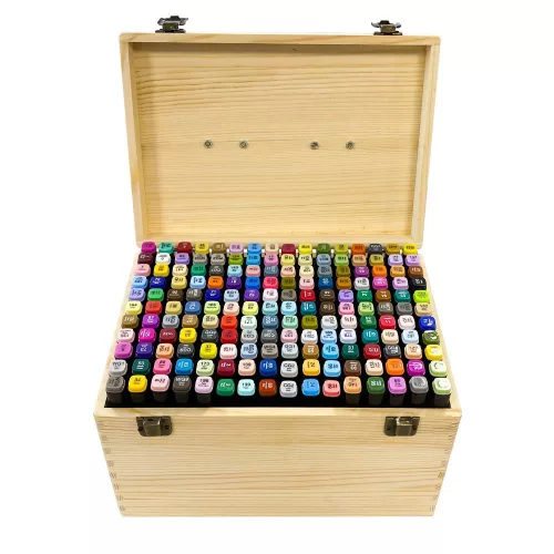 Ez a prémium minőségű, 176 darabos alkoholos marker készlet tökéletes választás művészek, illusztrátorok, tervezők és hobbi rajzolók számára. A kétvégű kialakítás lehetővé teszi a precíz vonalvezetést és a nagyobb felületek gyors színezését egyaránt. A készlet egy elegáns, masszív fadobozban érkezik, amely nemcsak esztétikus, hanem biztosítja a markerek rendszerezett és biztonságos tárolását is.