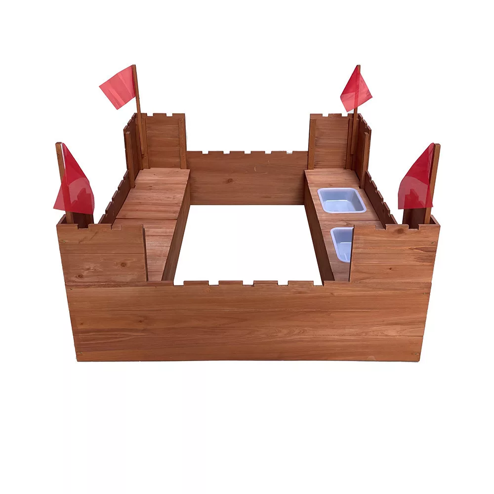 A várfalak és a zászlók csodálatos szerepjáték környezetet teremtenek, ahol a gyerekek egyedi kalandokat élhetnek át, miközben homokkal játszanak, formákat építenek és történeteket szőnek.