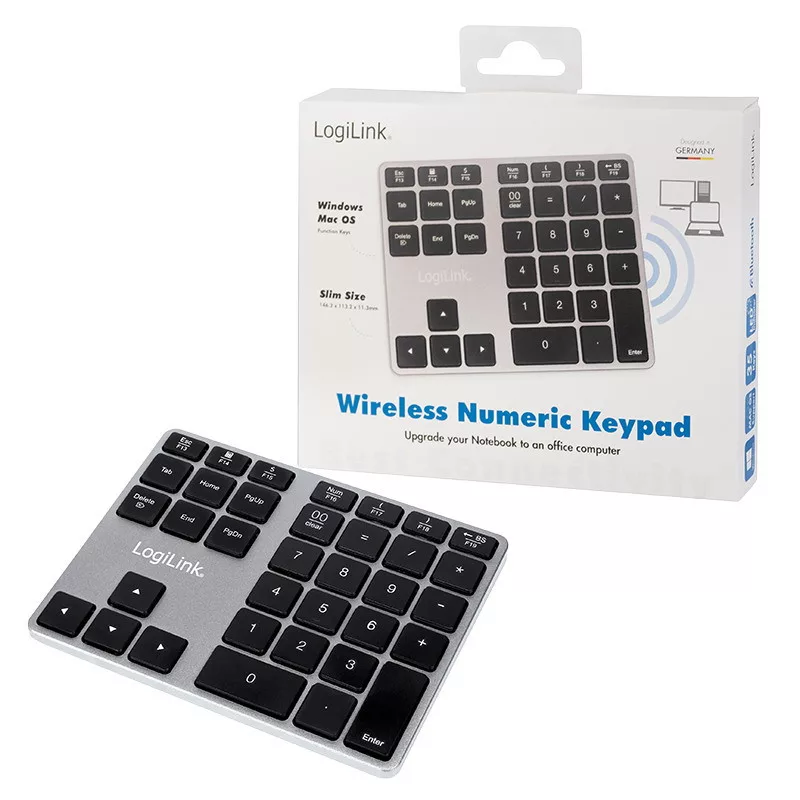 LogiLink Bluetooth numerikus billentyűzet nyíl- és funkciógombokkal szürke-fekete (ID0187)