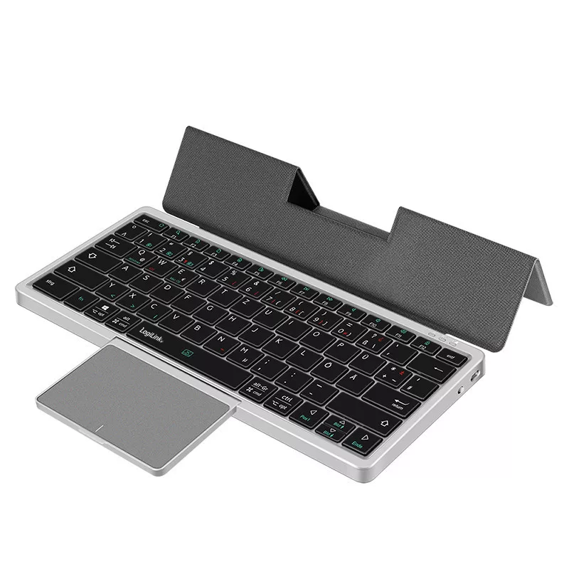 Logilink Vezeték nélküli többeszközös billentyűzet, BT 5.1, érintőpaddal és levehető borítással, szürke