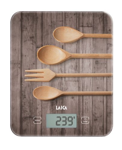 Laica digitális konyhai mérleg, mutatós konyha dizájnnal Mérési tartomány: max 10 kg Nagyobb mérési felület: 18.5 x 22.7 cm A folyékony élelmiszerek mérése ml-ben Beépített akasztó Érintő gombos kezelés