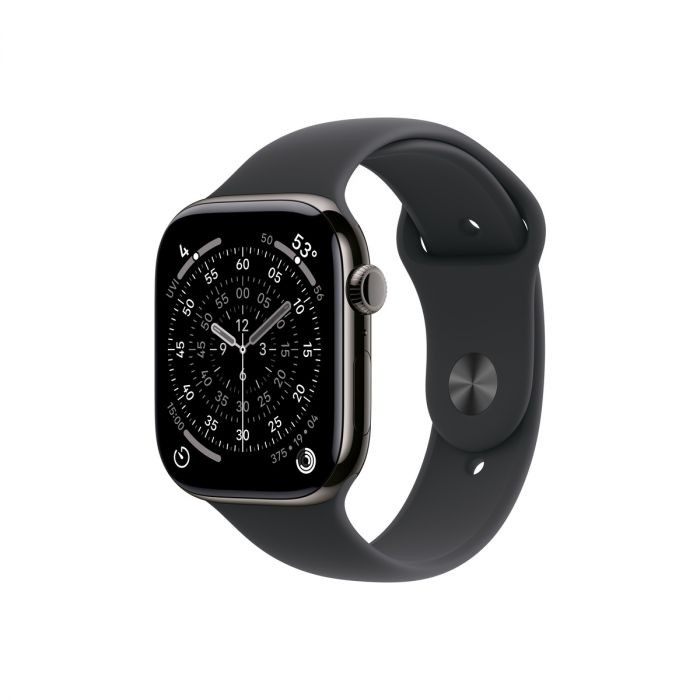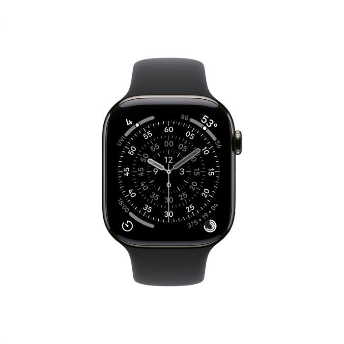 Apple Watch Series 11 GPS + Cellular – 46 mm-es Palaszürke titántok - Éjfekete sportszíj – S/M