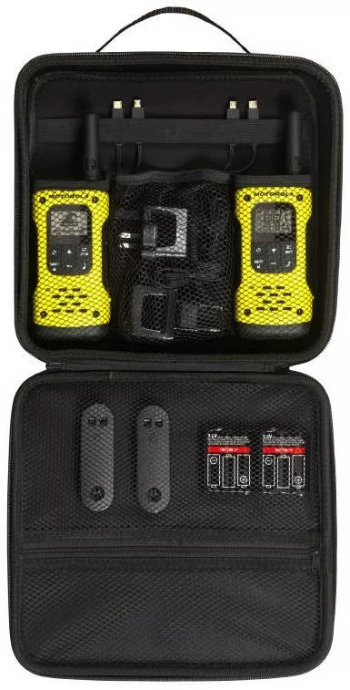 Tulajdonságok: Vízálló kivitelezés, masszív kialakítás, és akár 10 km*-es hatótávolság jellemzi a Motorola legújabb walkie talkie-ját a T92 H2O-t. A beépített zseblámpa fehér és piros fényt ad, automatikusan bekapcsol és villog, ha a készülék vízzel érintkezik. A vészhívás gomb megnyomásával azonnali hívást indíthatsz kézhasználat nélkül, a készülék pedig hangos figyelmeztető hangot ad. Így jelzi a csoport többi tagjának, hogy segítségre van szükséged. A készülékhez akkumulátor, USB autós töltő, beépített síppal rendelkező övklipsz és kemény tok tartozik. A Motorola T92 H2O-t szívesen ajánljuk mindenkinek aki vizes területen szeretne kommunikálni adóvevővel, főként vízi sportot űzőknek, vízparton dolgozóknak könnyű munka végzésére (ipari munkavégzésre nem ajánlott az adóvevő). IP67 osztály szerinti vízállóság A Motorola T92 H2O vízálló adóvevővel a szárazföldön és a tengeren is elérhető maradsz. IP67 besorolása szerint a Motorola T92 H2O kibírja, ha 30 percre 1 méter mélyre merítik, és lepereg róla a szakadó eső is. Vízre aktiválódó villogó, hogy könnyen megtaláljanak A gondosan megtervezett készülék lebeg a vízen és látható a felszínen. A vízzel érintkezésre bekapcsoló villogójával még könnyebben megtalálható. Felkészülve a vészhelyzetekre is A készülék vészhelyzeti riasztás funkcióval rendelkezik, így nyugodtan nekivághatsz bármilyen vízi kalandnak! Biztos lehetsz benne, hogy társaid értesültek arról, ha veszélybe kerülnél. Ha megnyomod a riasztás gombot a készülék sziréna hanggal riszt, majd adásra kapcsol, hogy azonnal beszélhess gombnyomás nélkül és a többiek hallják a zajokat és hangokat. Ezzel jelezhetsz a többi készüléknek is és figyelmeztetheted őket a fenyegető veszélyre. Az övklipszbe épített síppal is jelezheted, ha segítségre van szükséged. Emellett a készülék beépített LED-es zseblámpával is rendelkezik, hogy éjszakai kalandokon, váratlan veszélyhelyzetben és áramszünet esetén világíthass. Továbbfejlesztett beépített zseblámpa fehér és piros LED-del A fehér fényű LED-del megvilágíthatod az utat esti kirándulás során, váratlan vészhelyzetek vagy áramkimaradások esetén. Ha a kirándulásra sötétben kerül sor, például ha csillaghullást nézel vagy vadászol éjszaka, és meg kell nézned a térképet, kapcsold be a piros fényű LED-et. Áramellátás a kalandokhoz A rádiót kétféleképpen működtetheted: a mellékelt NiMH akkumulátorral akár 16 órán keresztül, vagy három darab AA méretű elemmel akár 23 órán keresztül. A Motorola T92 H2O készülékhez dupla autós töltőt mellékelünk, amellyel egyszerre két rádiót tölthetsz fel az autódban vagy kisbuszodban menet közben. A töltő USB kábelei kihúzhatók, így azokat csatlakoztathatod a számítógéped USB portjához is. 8 csatorna, mindegyikhez 121 titkosítási kód A 8 csatorna és 121 titkosítási kód csaknem 1000 kombinációt biztosít, így könnyen találhatsz szabad csatornát. Szabad kézzel is Az iVOX/VOX funkcióval a készülék hangszórója mikrofonként is működik, és anélkül válaszolhatsz a hívásra, hogy oda kellene nyúlnod. Egyedi hívóhangok A rendelkezésére álló 20 hívóhang közül kiválaszthatod azt, hogy a barátaid hívásakor melyik csengőhang szólaljon meg. Rezgő hívásjelző Használd a rezgő riasztás funkciót olyan helyeken, ahol a hangos hívásjelzés zavaró lenne. Gyorsan csatornaszkennelés Használd a szkennelés funkciót annak megtekintéséhez, mely csatornákat használják éppen. Akkumulátor lemerülés riasztás Az akkumulátor lemerülés riasztás figyelmeztet, amikor az akkumulátor merül. Kompatibilis bármely PMR446 készülékkel A Motorola T92 H2O PMR446 kompatibilis a többi Motorola TLKR készülékkel, így kommunikálhatsz más adóvevőkkel is PMR446 sávon, sőt más gyártók készülékeivel is, amelyek ugyanazon a csatornán és titkosítási kóddal működnek. Billentyűzet lezárása A billentyűzet lezárása meggátolja, hogy egyedi beállításaidat véletlenül módosítsd.