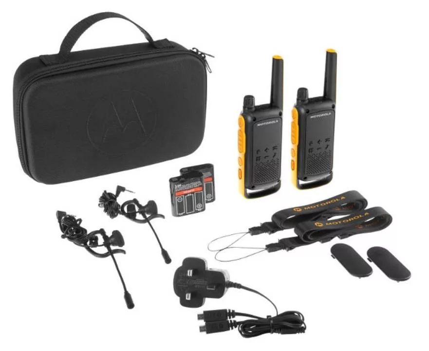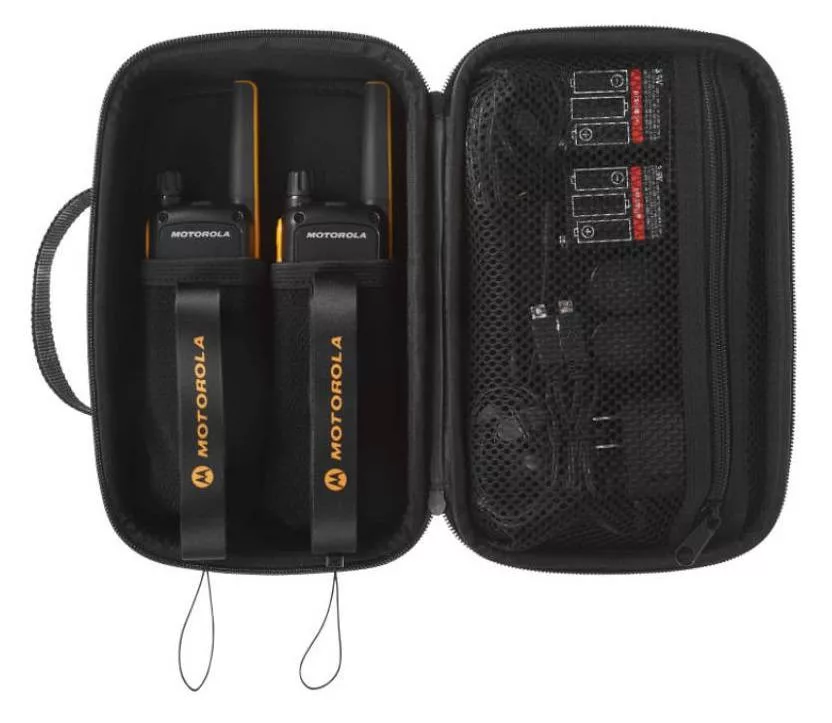 A kiegészítő tartozékokkal és a 10 km*-es hatótávolsággal a Motorola Talkabout T82 Extreme walkie talkie biztonságos és stabil kommunikációs eszközöd lesz a legmagasabb csúcsokon, vagy a legkeményebb túrák során is! A Motorola Talkabout T82 Extreme adóvevőket és tartozékait egy praktikus, fekete hordozótáskába csomagolva szállítjuk.