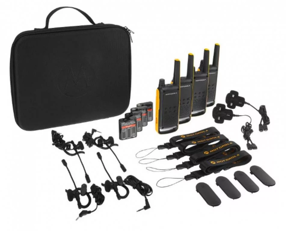 Tulajdonságok: A Motorola Talkabout T82 Extreme Quad a T82 Extreme nagyobb kiszerelése, a csomagban ugyanis 4 db. T82 Extreme walkie talkie található. Azoknak ajánljuk, akik egyszerre többen szeretnének kommunikálni, és minimum 4 db. engedély nélküli adóvevőre lenne szükségük. A T82 Extreme Quad walkie talkie IPX4 védelemmel ellátott ami azt jelenti, hogy kis mértékben víz és ütésálló, de nagyobb esőben nem javasoljuk a használatát. Az új design-nak köszönhetően a rejtett kijelző diszkrét megjelenést biztosít és kíméli az akkumulátor használatot is.