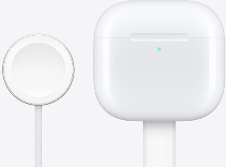 Gyorsan feltölt. És bírjaA kisebb és többre képes tokkal órákra feltöltheted. Az áramvonalas töltőtok4 több mint 10 százalékkal kisebb az előző generációhoz képest, a töltési idő azonban nem változik. Az Aktív zajkioltásos AirPods 4-hez vezeték nélküli töltőtok jár, és beépített hangszórót is kapott, hogy még könnyebben megtaláld a Lokátorral.